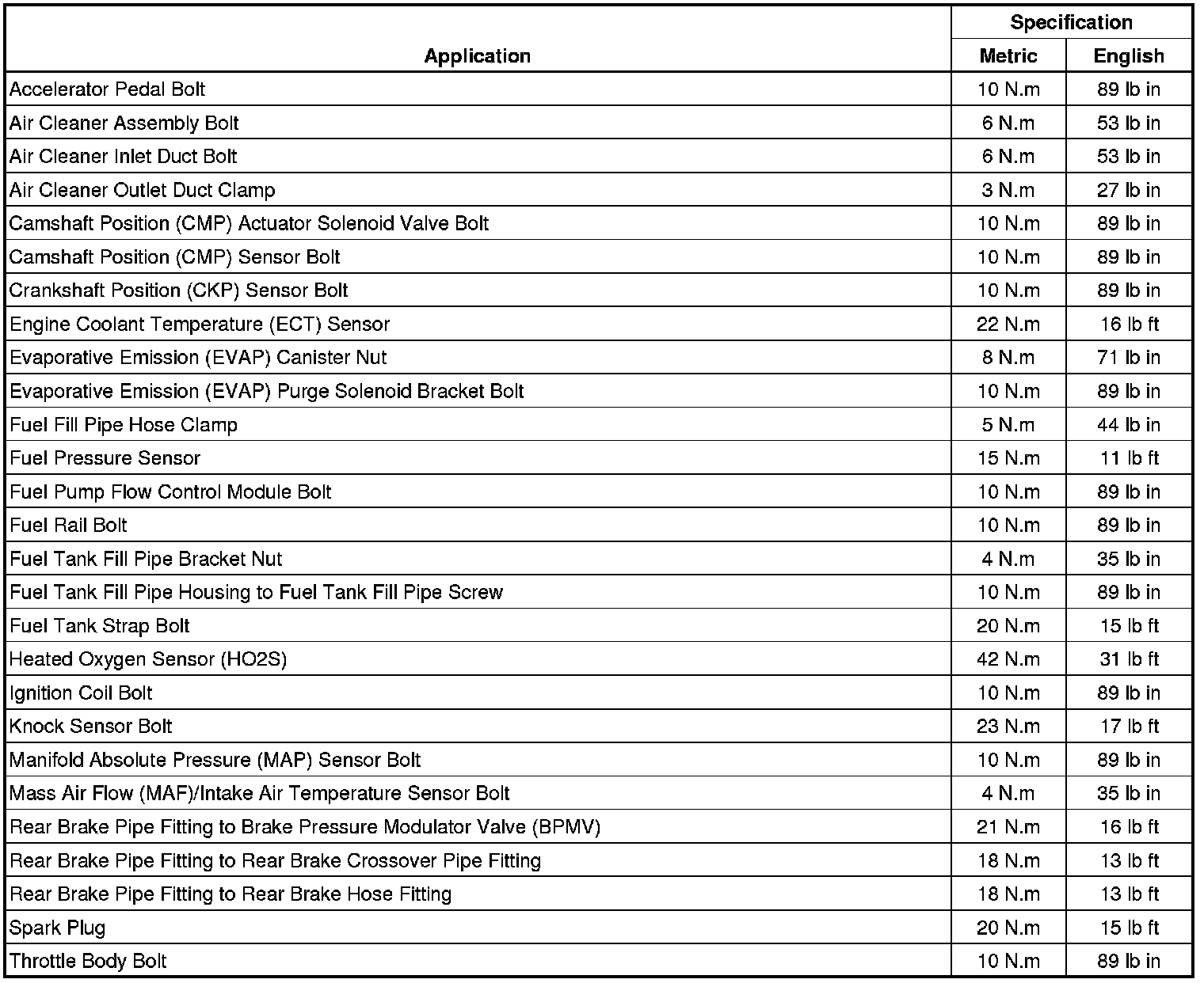 Fastener Tightening Specifications