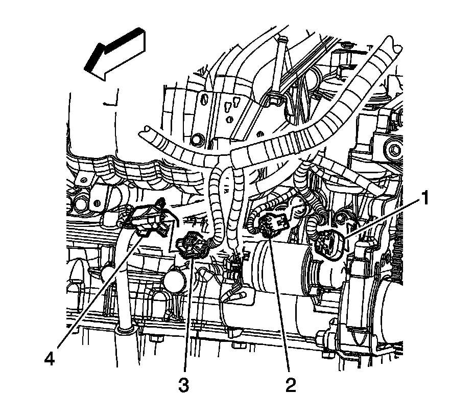 2. Disconnect the engine wiring harness electrical connector (3) from the knock sensor electrical connector (4).