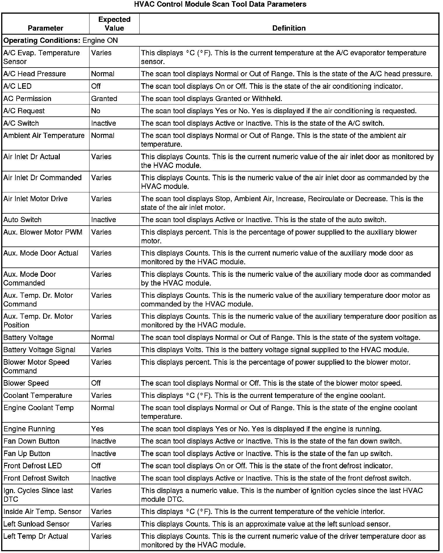 Heating, Ventilation and Air Conditioning Control Module Scan Tool Information