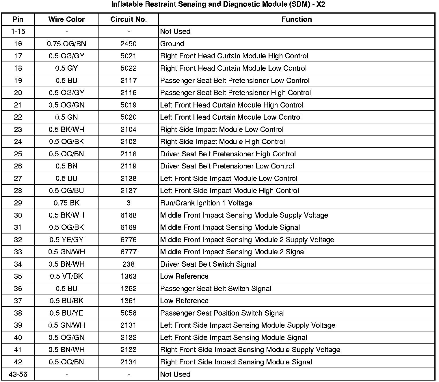 Inflatable Restraint Sensing and Diagnostic Module (SDM) - X2