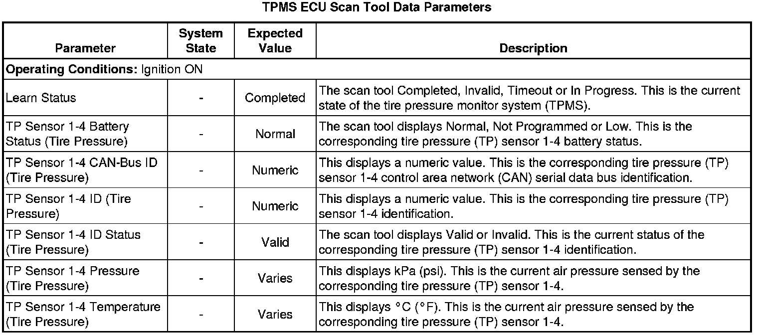 Tire Pressure Indicator Receiver Scan Tool Information