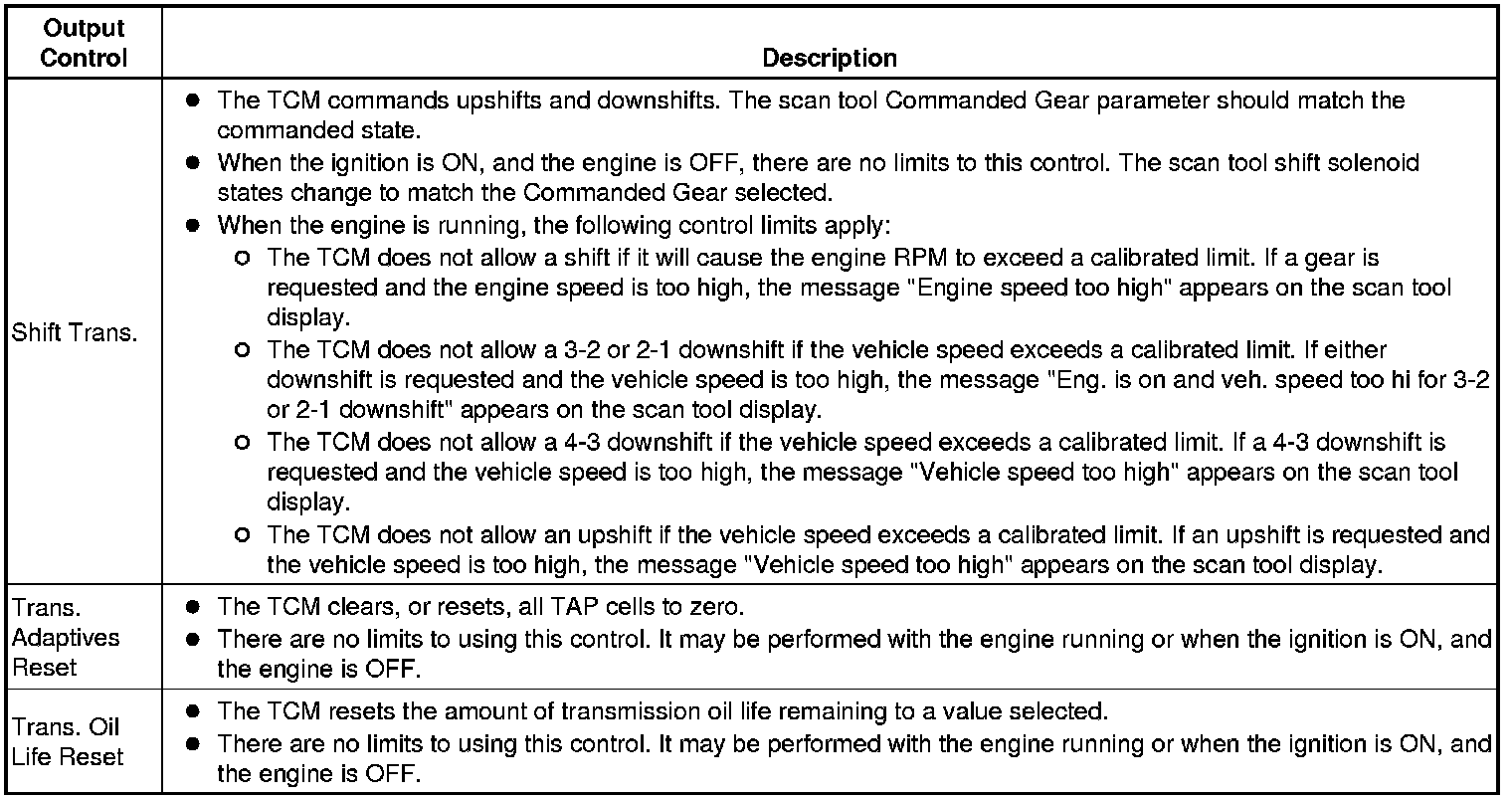 The Transmission Control Module Scan Tool Data List contains all transmission related parameters that are available on the scan tool. The list is arranged in alphabetical order. A given parameter may appear in any one of the data lists, and in some cases may appear more than once, or in more than one data list in order to group certain related parameters together.