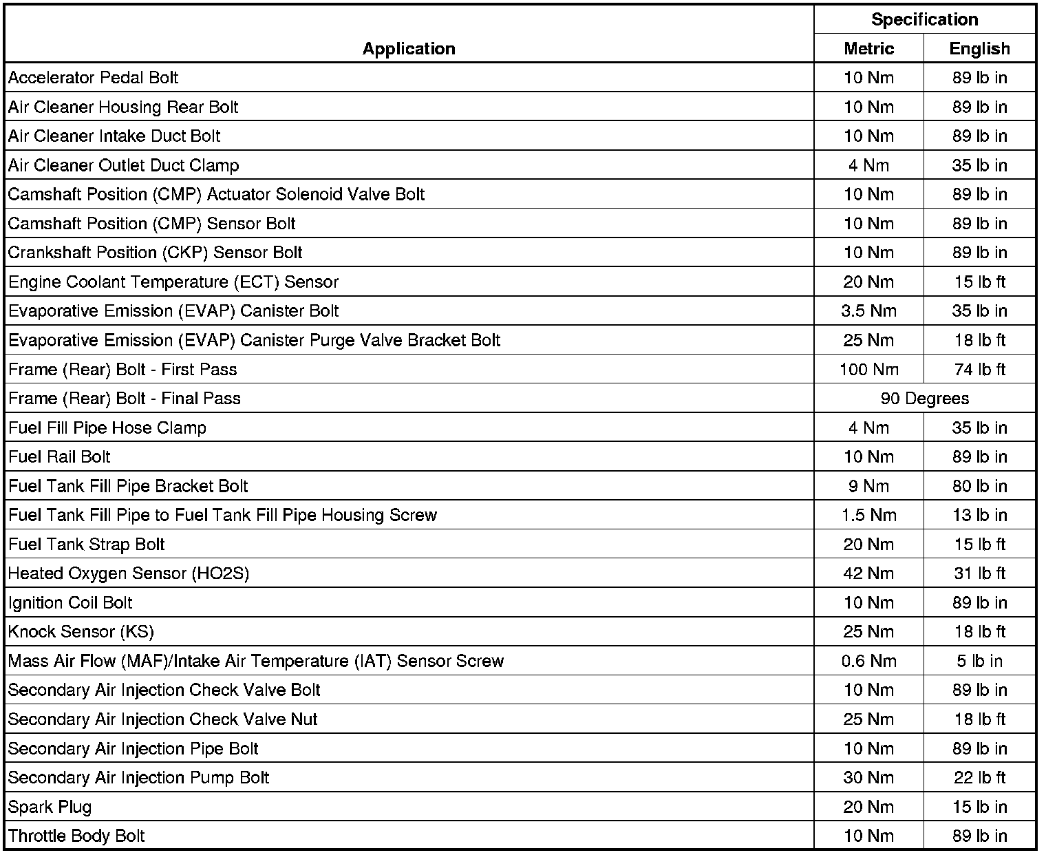 Fastener Tightening Specifications