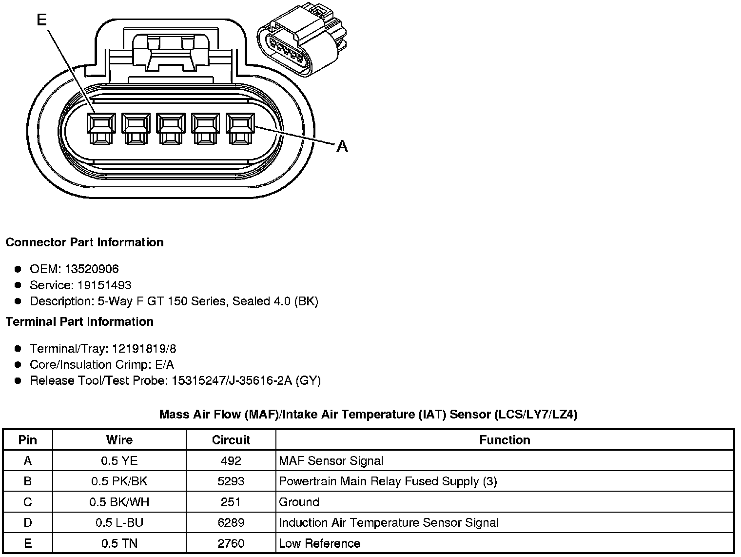 Mass Air Flow (MAF)/Intake Air Temperature (IAT) Sensor (LCS/LY7/LZ4)