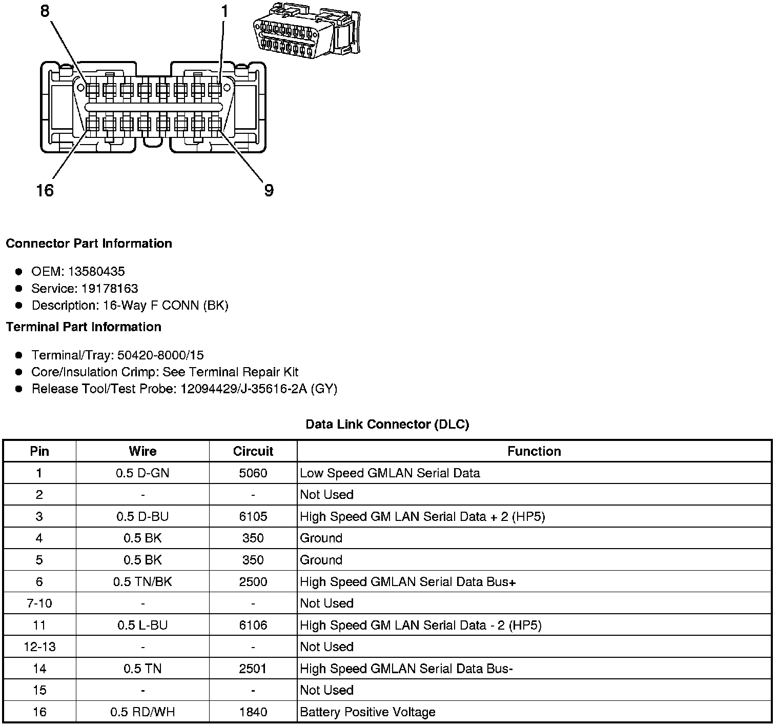 Data Link Connector: Diagrams