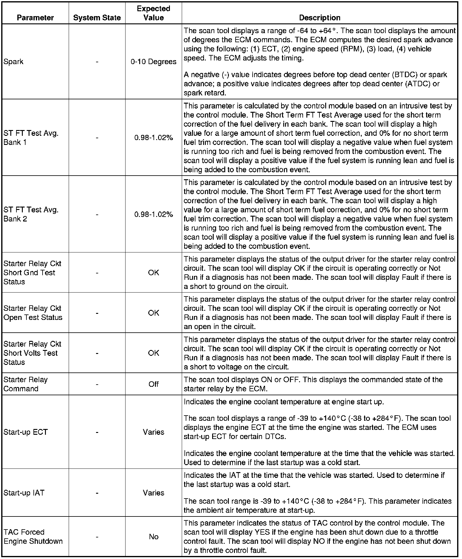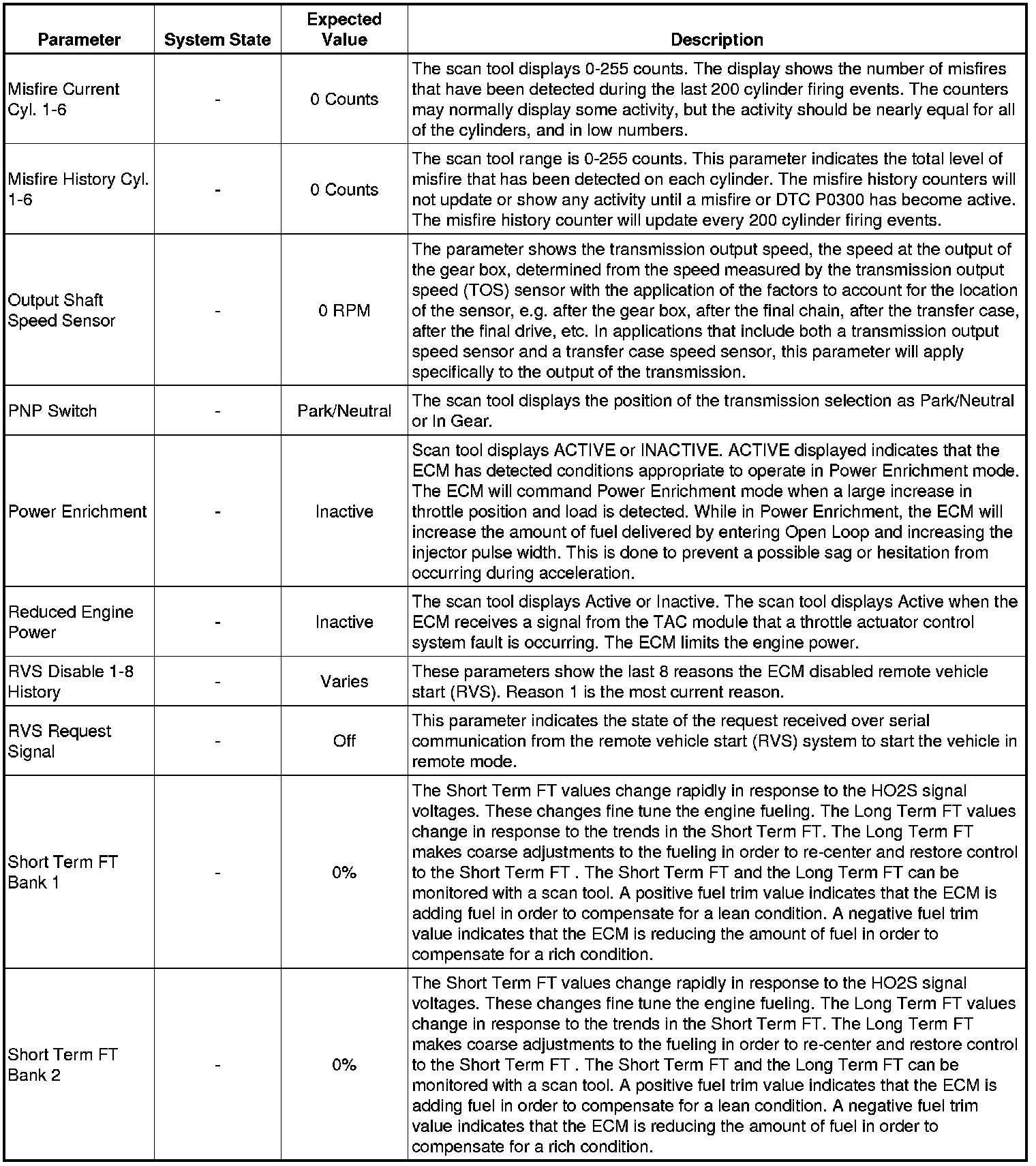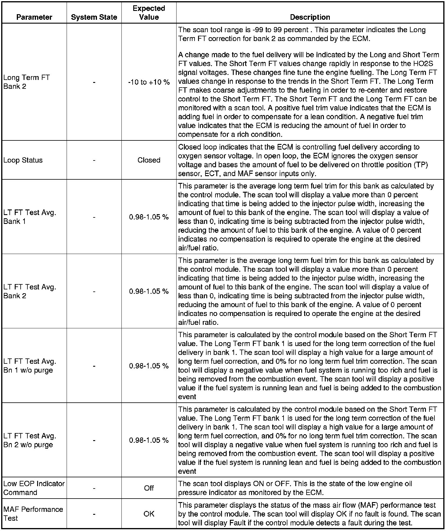 The Engine Scan Tool Data List represents values that would be seen on a normally running engine under the conditions listed below.