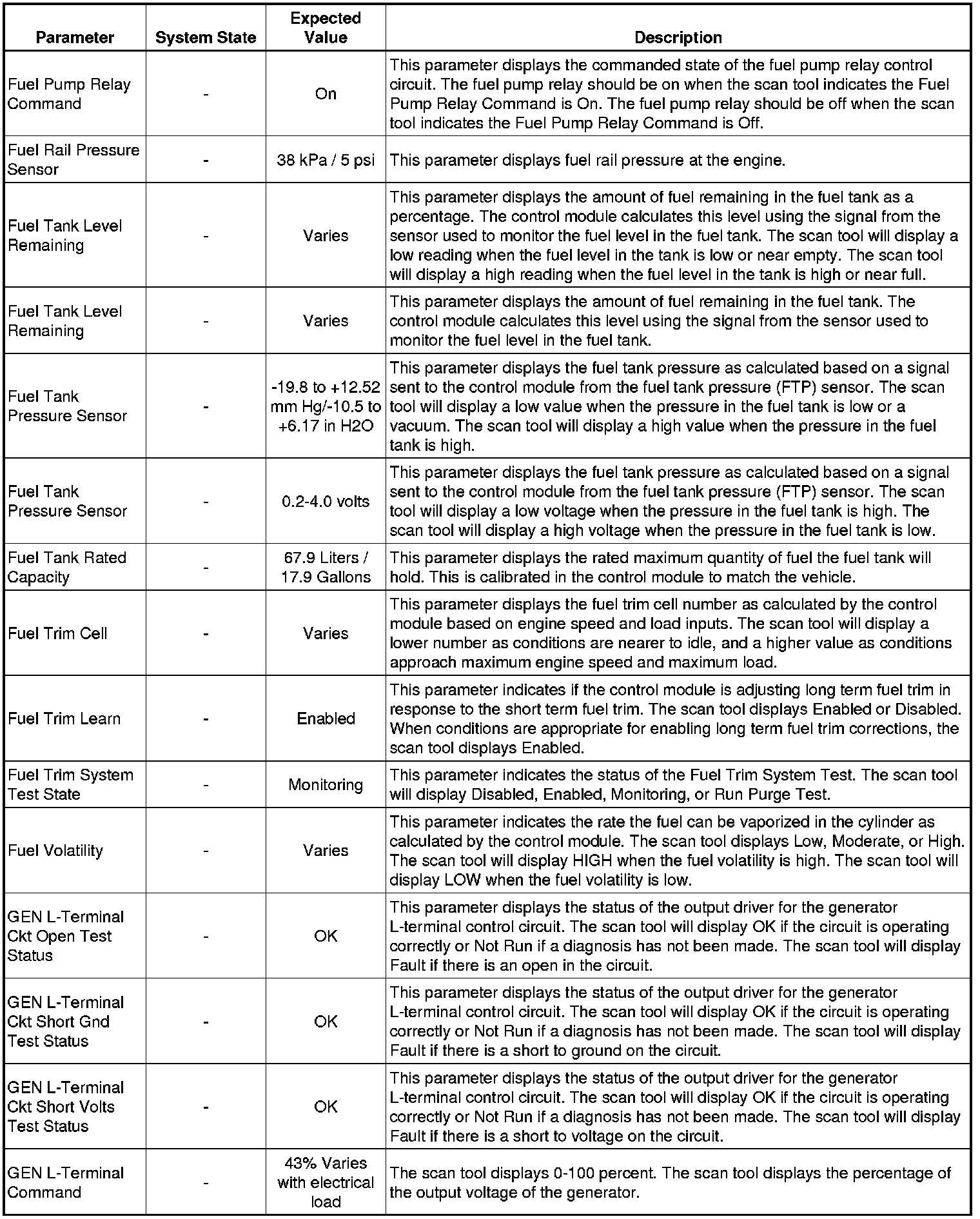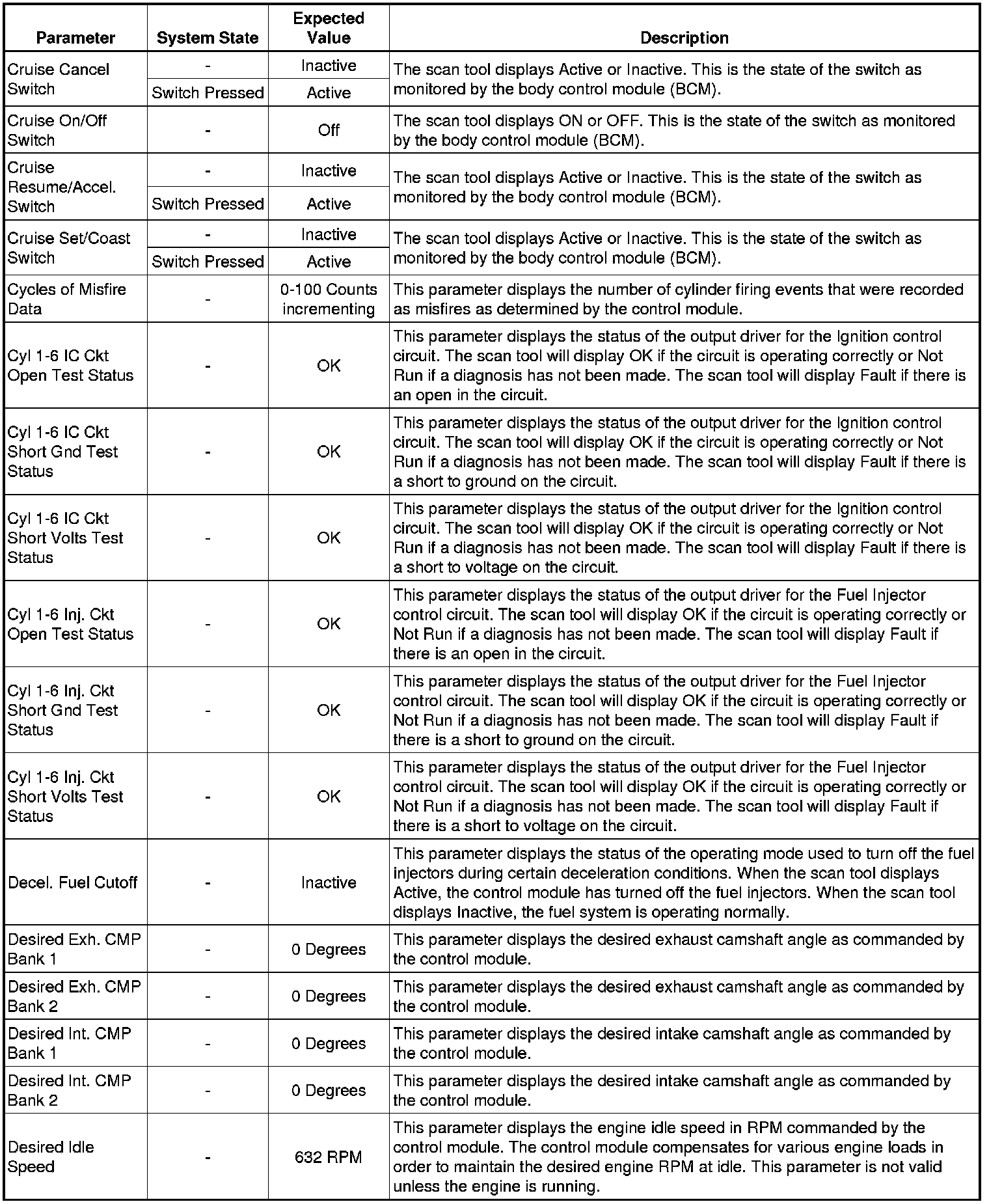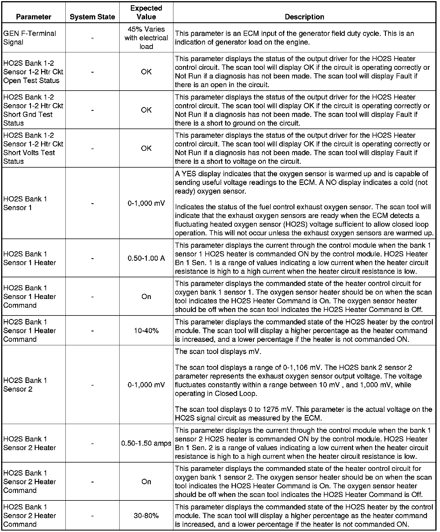 The Engine Scan Tool Data List represents values that would be seen on a normally running engine under the conditions listed below.