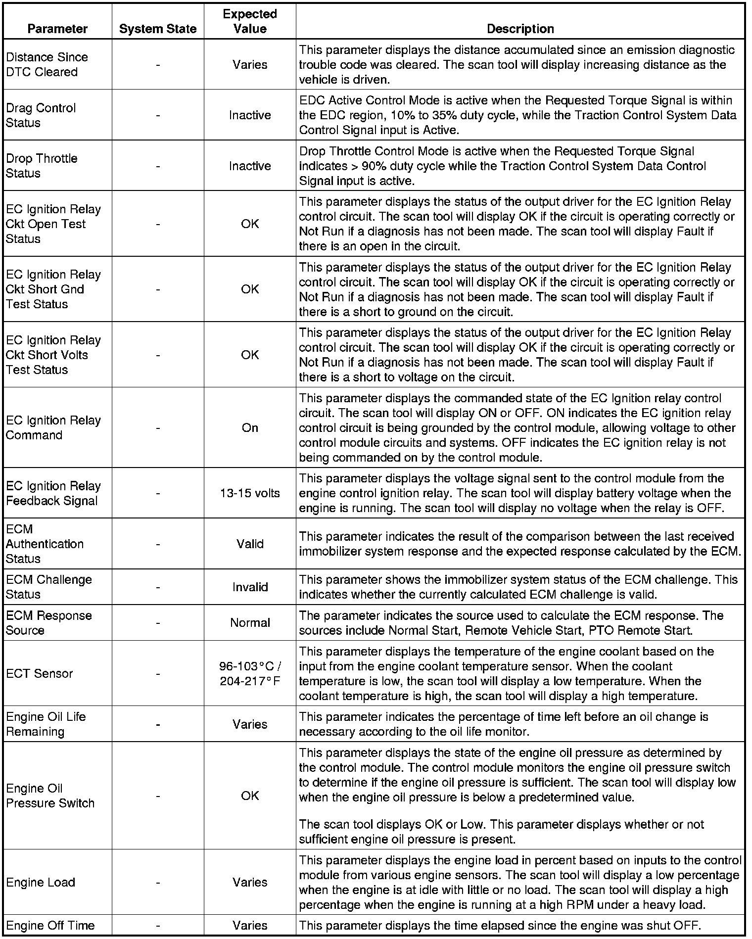 The Engine Control Module (ECM) Scan Tool Data List contains all ECM-related parameters that are available on the scan tool. The list is arranged in alphabetical order. A given parameter may appear in any one of the data lists, and in some cases may appear more than once, or in more than one data list in order to group certain related parameters together.