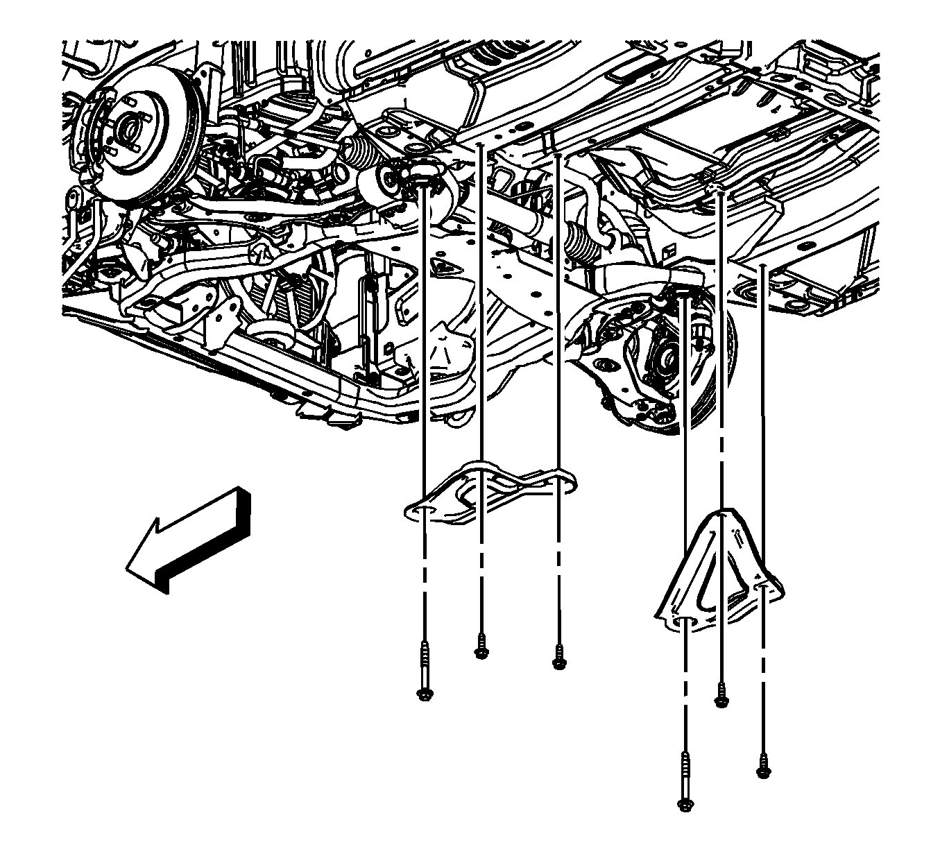 6.Remove the engine splash shields. Refer to Engine Splash Shield Replacement Service and Repair .