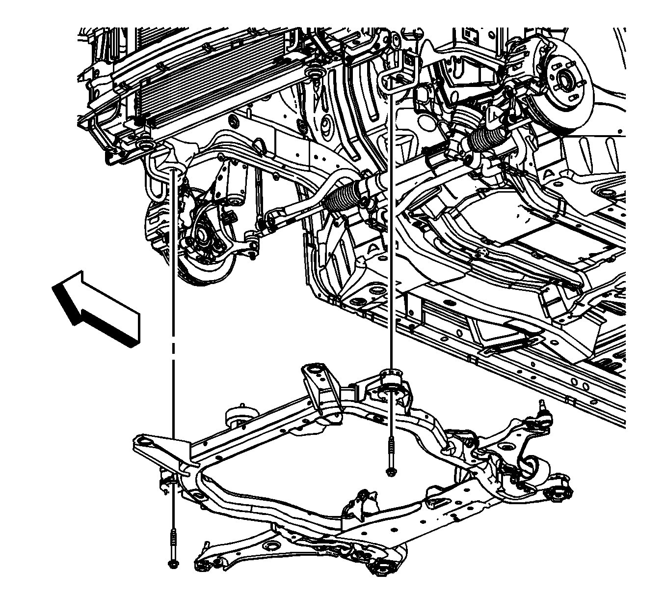 4.Install the frame reinforcement. Refer to Drivetrain and Front Suspension Frame Reinforcement Replacement .
