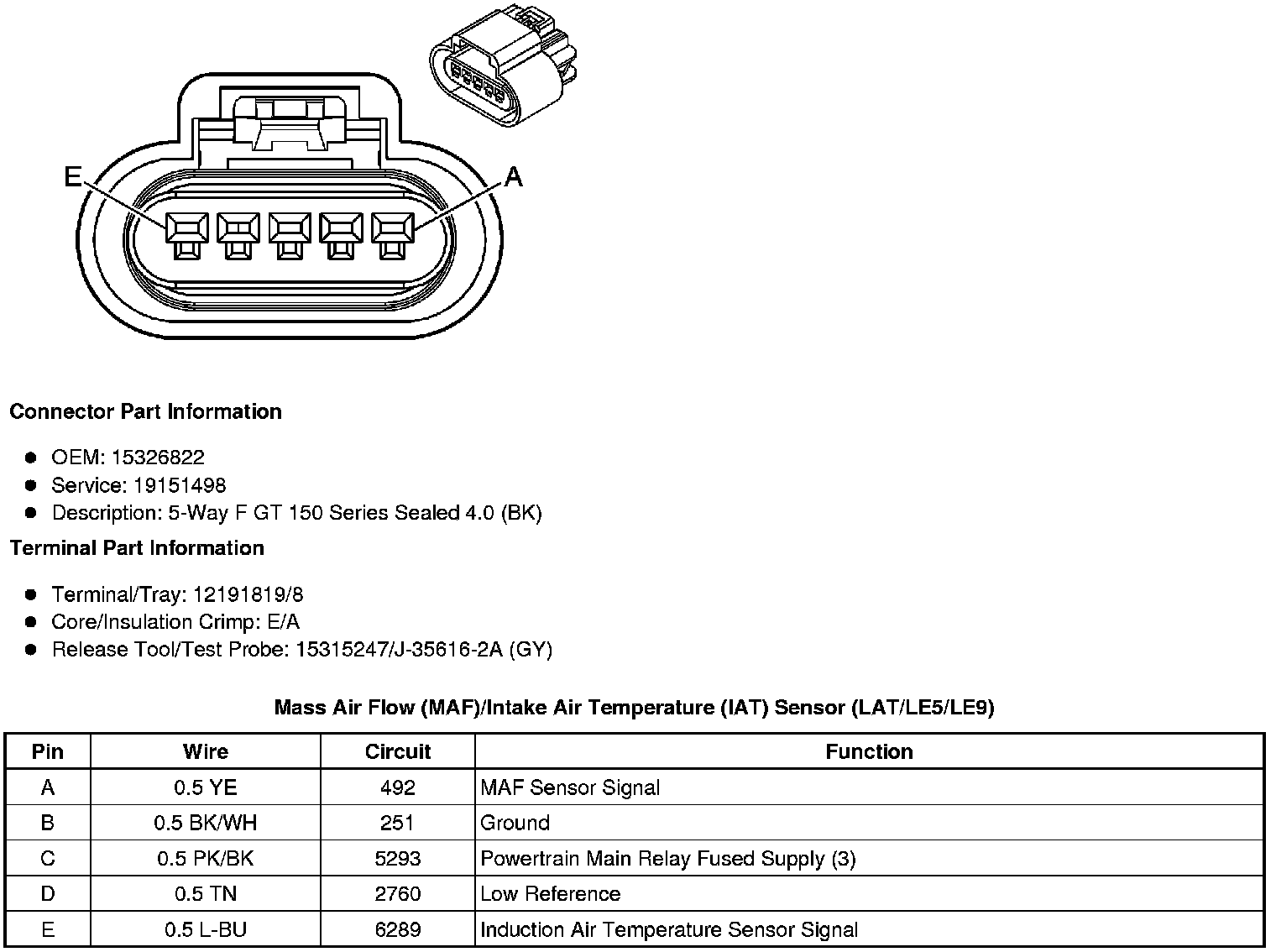 Mass Air Flow (MAF)/Intake Air Temperature (IAT) Sensor (LAT/LE5/LE9)