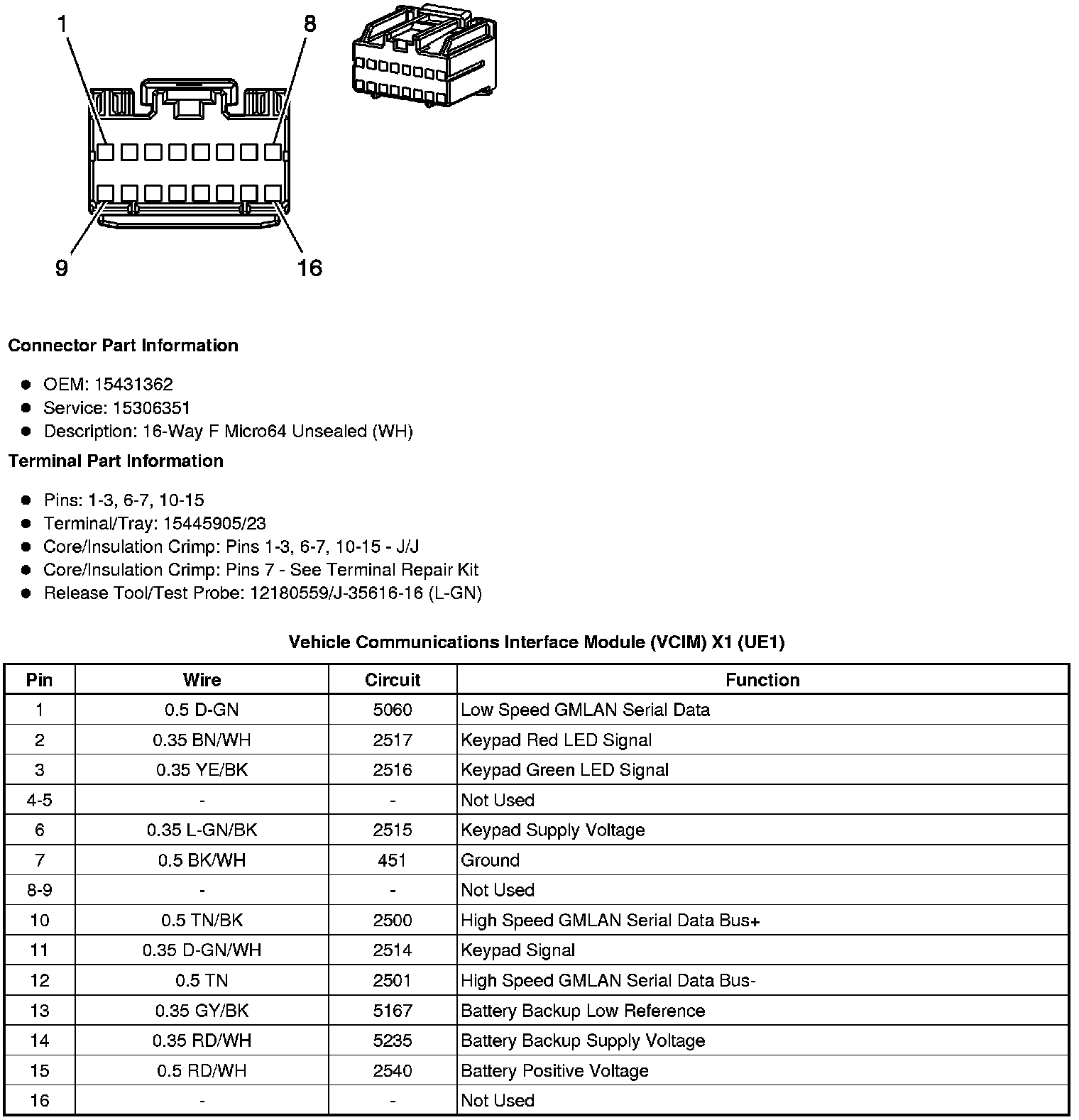 Vehicle Communications Interface Module (VCIM) X1 (UE1)