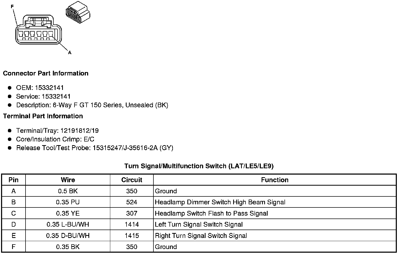 Turn Signal/Multifunction Switch (LAT/LE5/LE9)