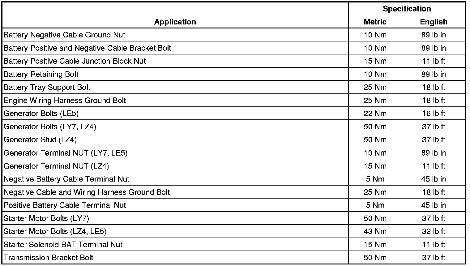 Fastener Tightening Specifications