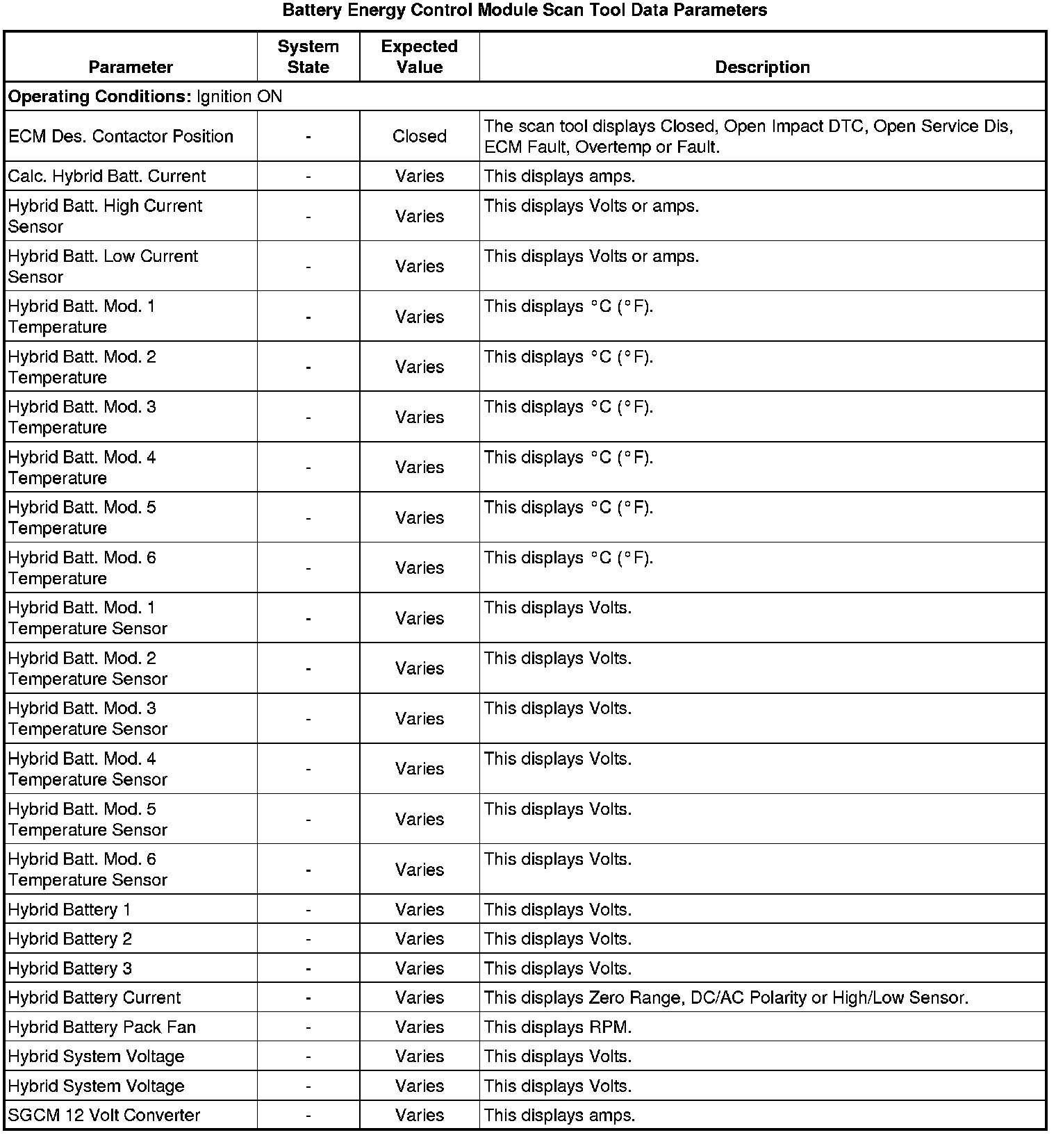 Generator Battery Disconnect Control Module Scan Tool Information