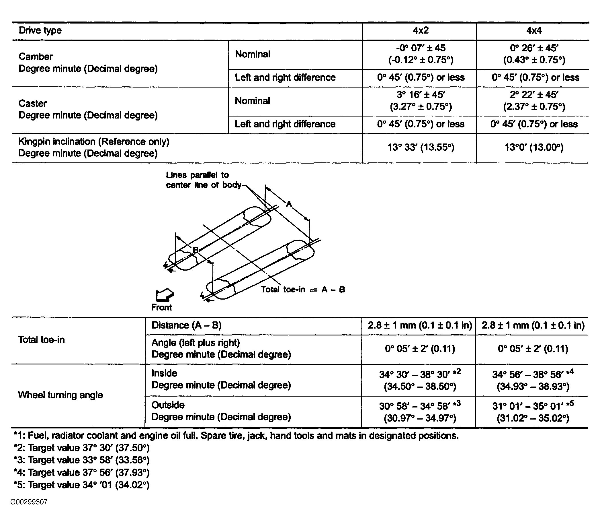 Section 249 (Wheel Alignment Specifications & Adjustment Procedures): Specifications