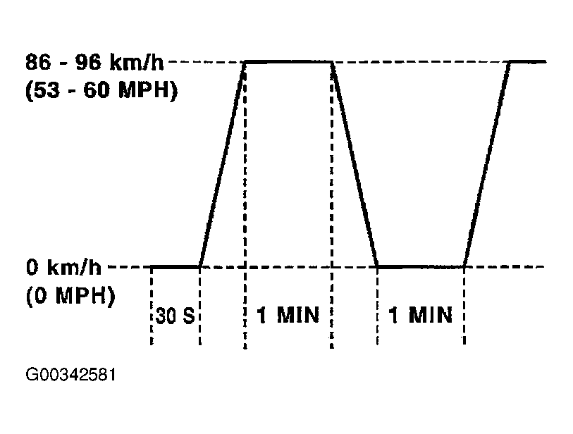 *1: Depress the accelerator pedal until vehicle speed is 90 km/h (56 MPH), then release the accelerator pedal and keep it released for more than 10 seconds. Depress the accelerator pedal until vehicle speed is 90 km/h (56 MPH) again.