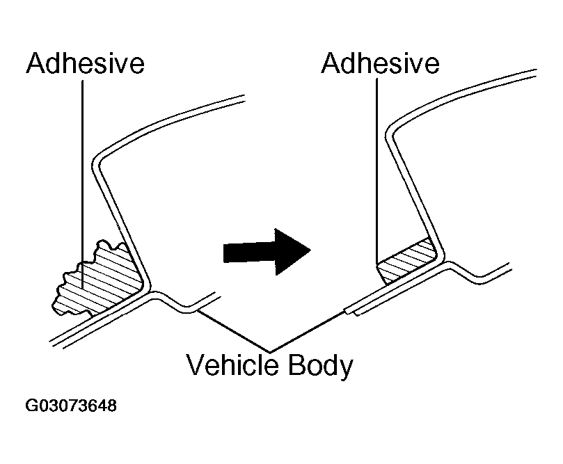 - On the contact surface of the vehicle body, use a knife to cut away excess adhesive as shown in Fig 3