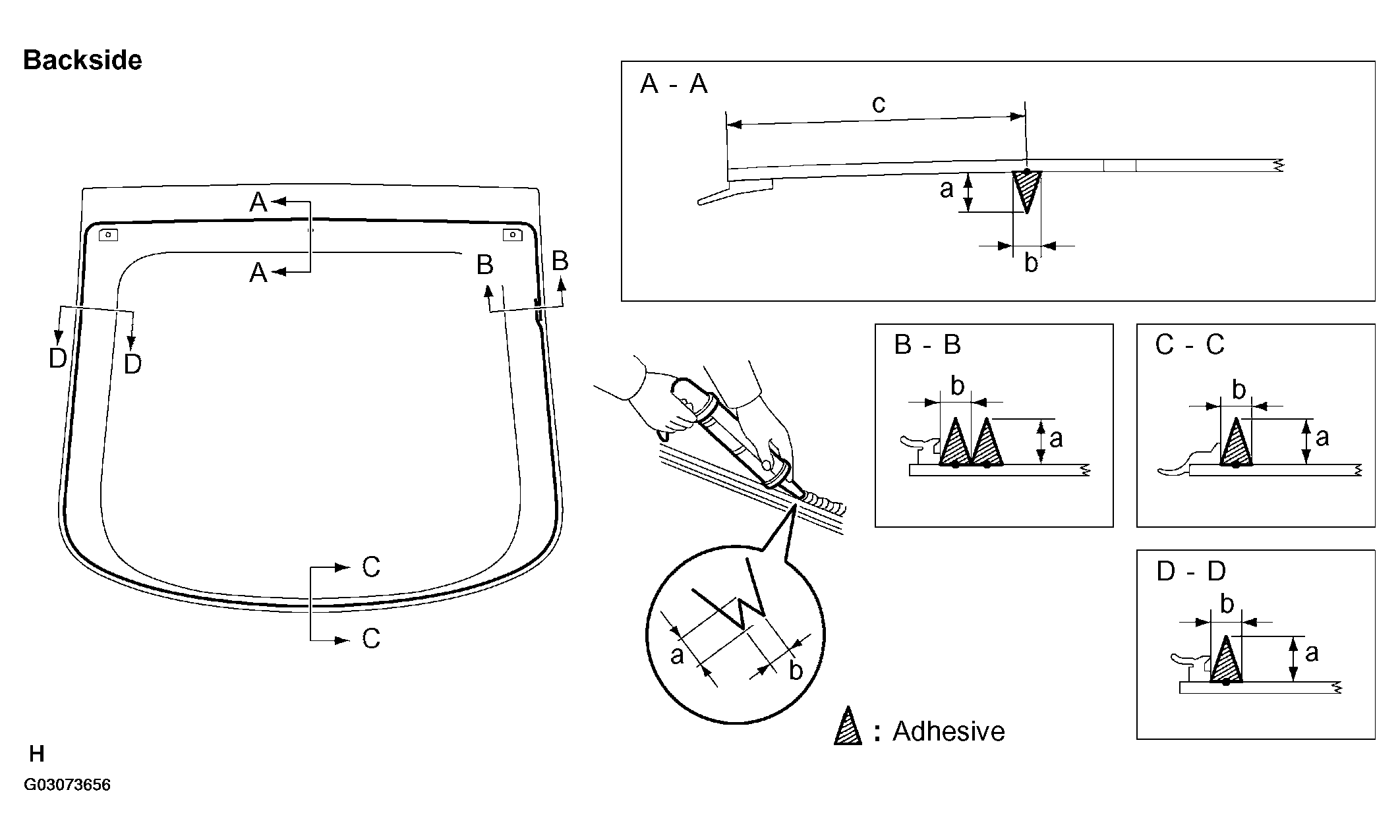 - Apply Primer G to the glass where the adhesive dam will be installed.