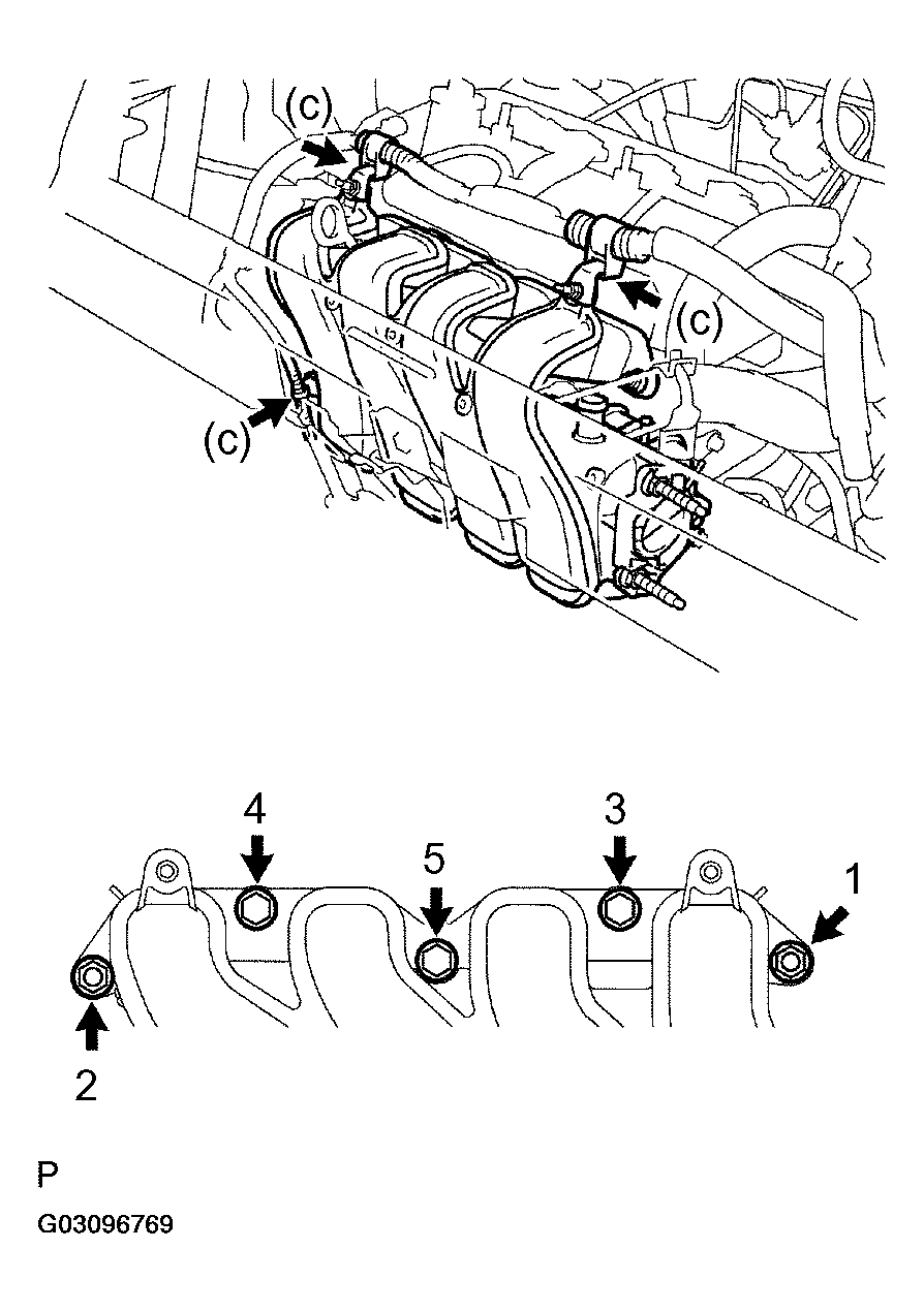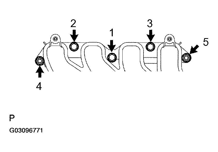 - In order to remove the intake manifold, using several steps, remove the 3 bolts and 2 nuts in the sequence shown in Fig 5.