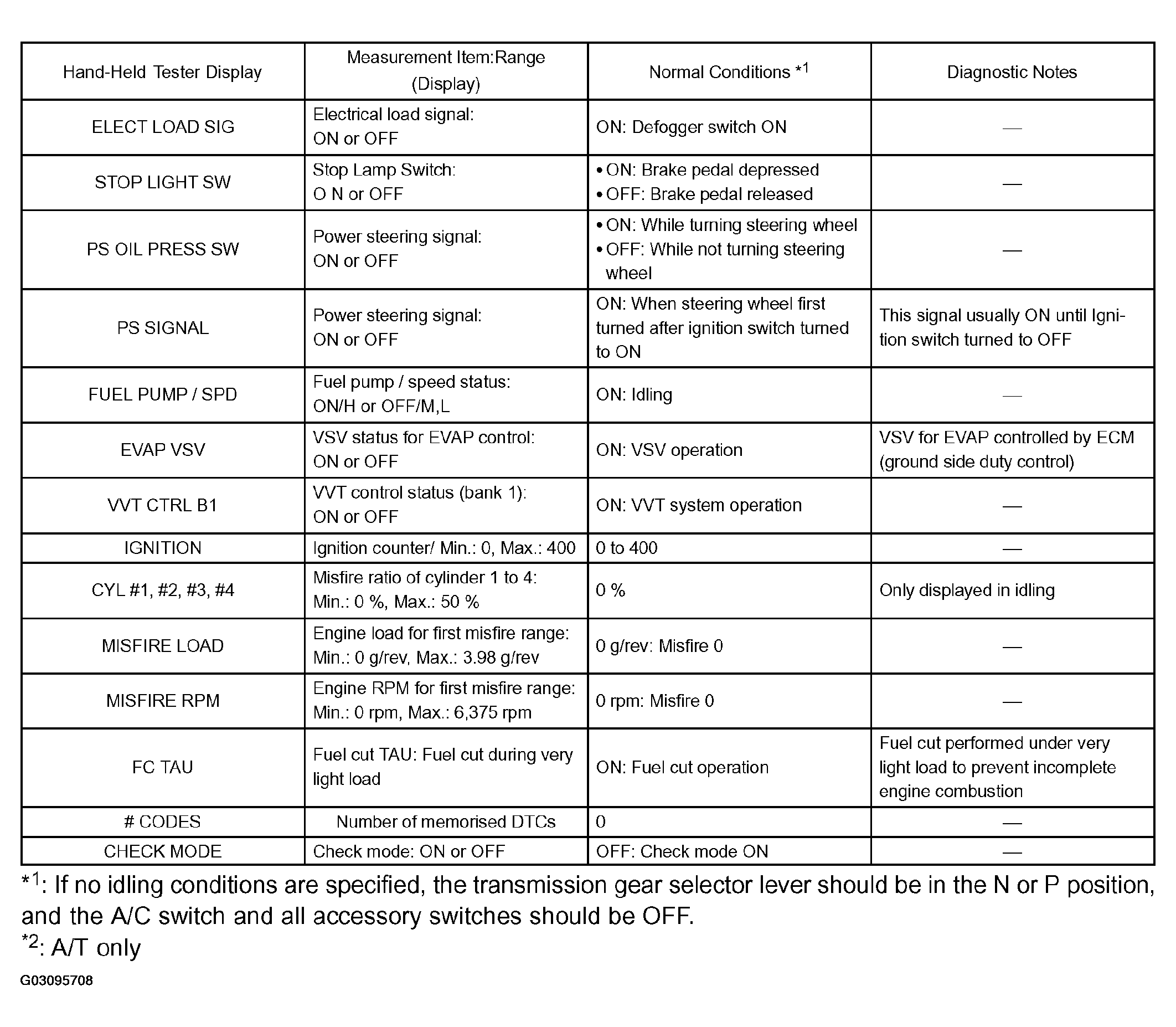 By reading the DATA LIST displayed on a hand-held tester or OBD II scan tool, you can check values, including those of the switches, sensors, and actuators, without removing any parts. Reading the DATA LIST as the first step of troubleshooting is one method of shortening diagnostic time.