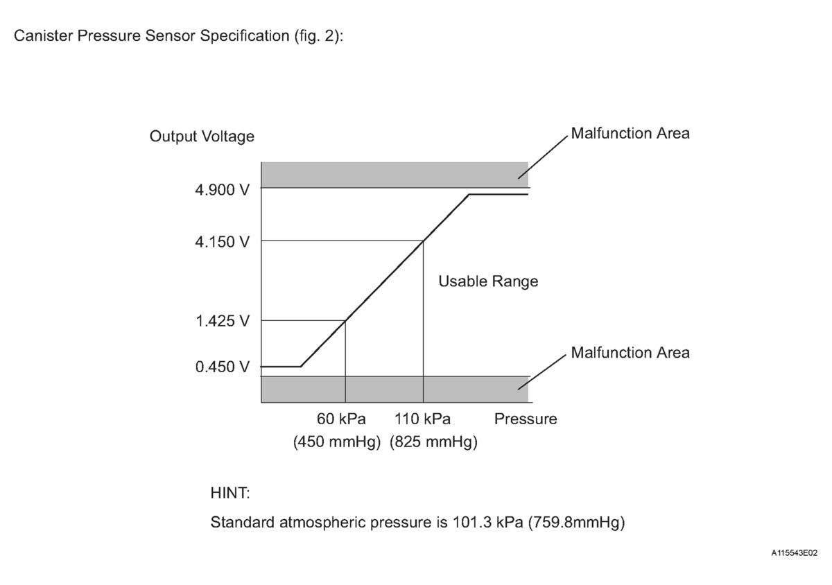 (b) Canister pressure sensor Indicates pressure as voltage. ECM supplies regulated 5 V to canister pressure sensor, and uses feedback from sensor to monitor EVAP system pressure (refer to Fig 5).