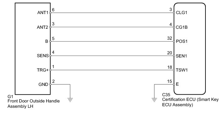 NG -- CHECK HARNESS AND CONNECTOR (FRONT DOOR OUTSIDE HANDLE LH - CERTIFICATION ECU AND BODY GROUND)