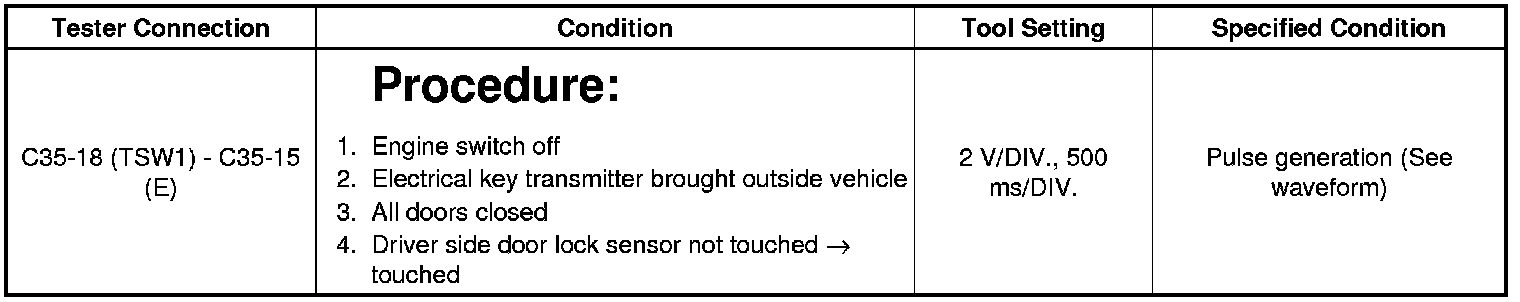 4. CHECK FRONT DOOR OUTSIDE HANDLE ASSEMBLY LH (DRIVER SIDE DOOR LOCK SENSOR SIGNAL INPUT)