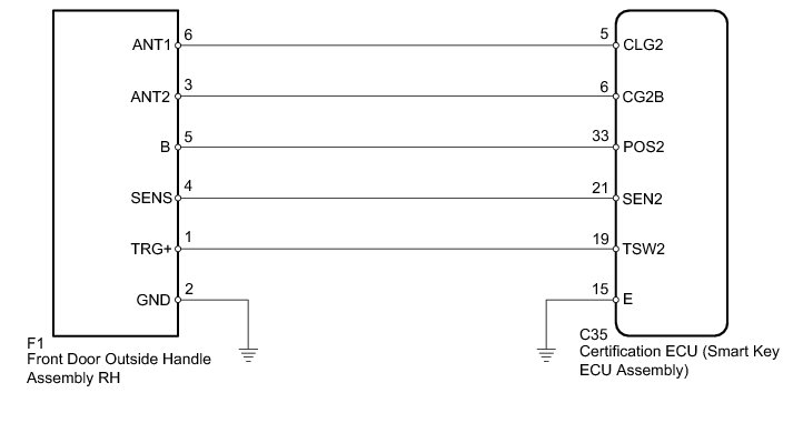 NG -- CHECK HARNESS AND CONNECTOR (FRONT DOOR OUTSIDE HANDLE RH - CERTIFICATION ECU AND BODY GROUND)