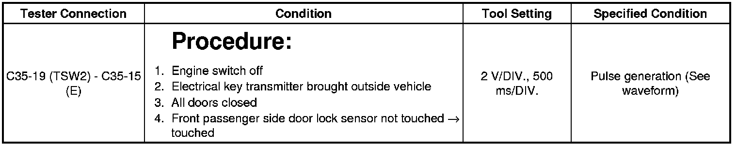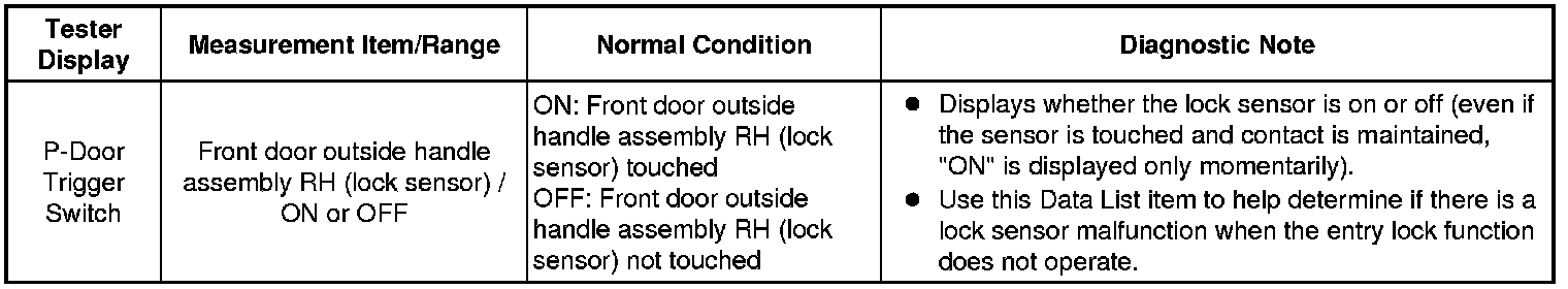 4. CHECK FRONT DOOR OUTSIDE HANDLE ASSEMBLY RH (FRONT PASSENGER SIDE LOCK SENSOR SIGNAL INPUT)