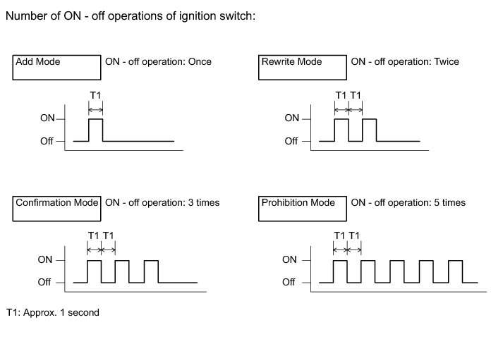 * If registering another transmitter, repeat the procedures after the Techstream operation. All 4 recognition codes can be registered consecutively.