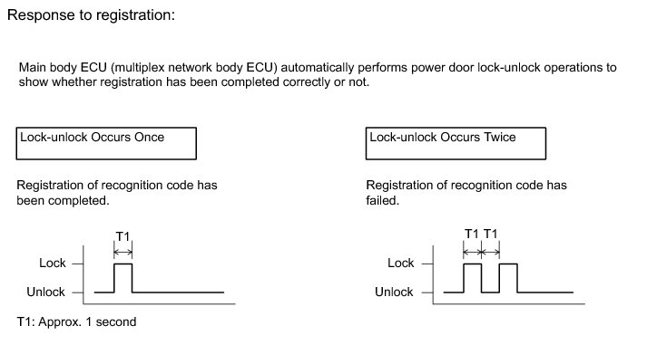 * If the lock-unlock operation occurs twice, the registration of the recognition code has failed. Perform the registration procedures again from the beginning.