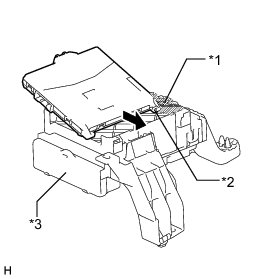 (b) Slide the guide of the multiplex network body ECU along the housing sidewall toward the junction block fuses as shown in the illustration.