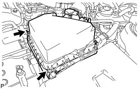 (h) Detach the 2 hook clamps, and then remove the air cleaner cap.