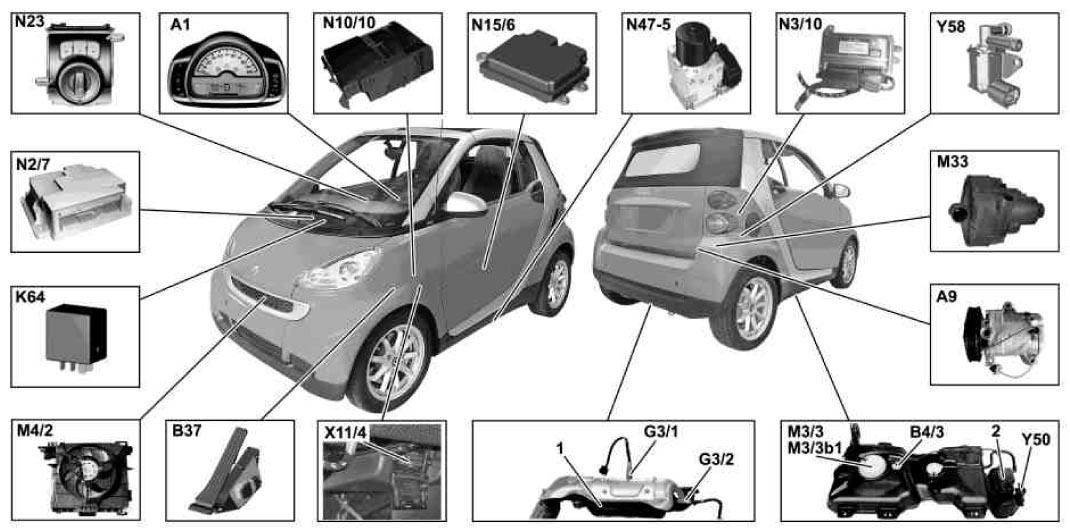 | ME-SFI (ME) Control Unit (N3/10) | Right rear of luggage compartment. See Figure. |