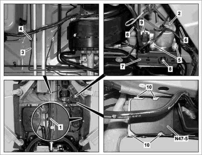 | ESP Control Unit (N47-5) | Left center of vehicle undercarriage. See Figure. |
