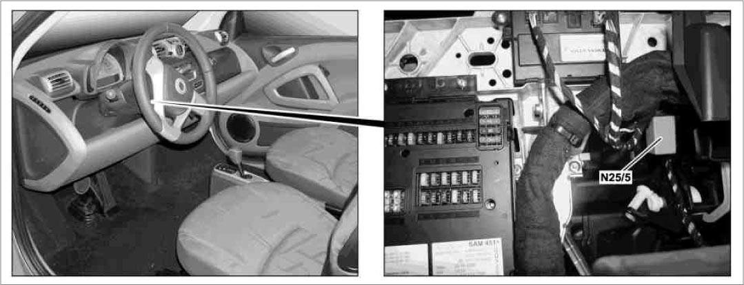 | Front HS (SIH) Control Unit (N25/5) | Left side of dash. See Figure. |