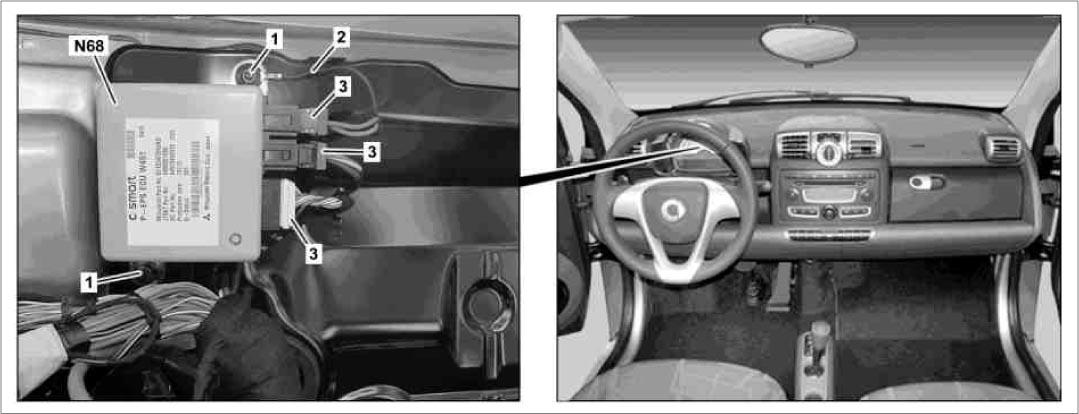 | Steering Assist Control Unit (N68) | Behind instrument cluster. See Figure. |
