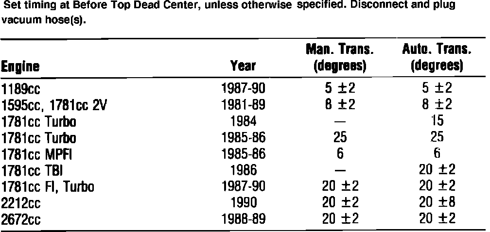 Ignition Timing: Specifications