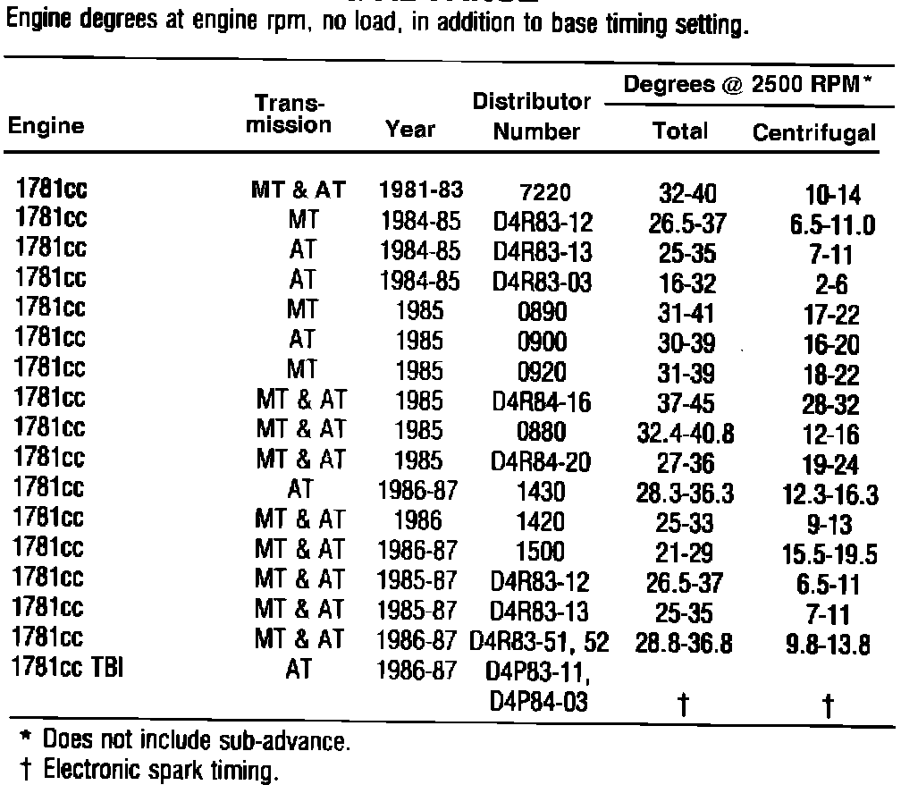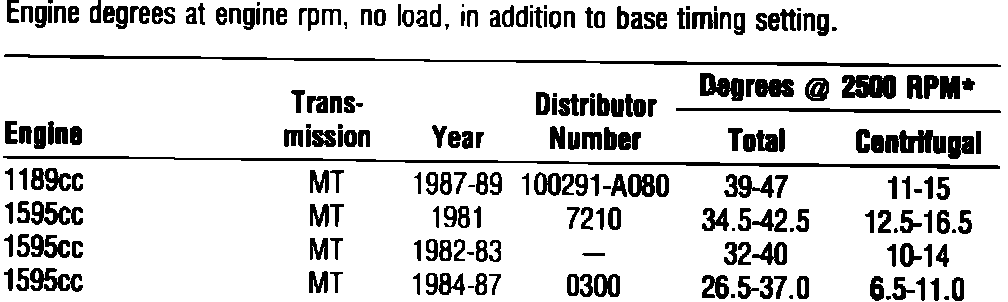 Fig. 2 Distributor Timing Advance Specifications: