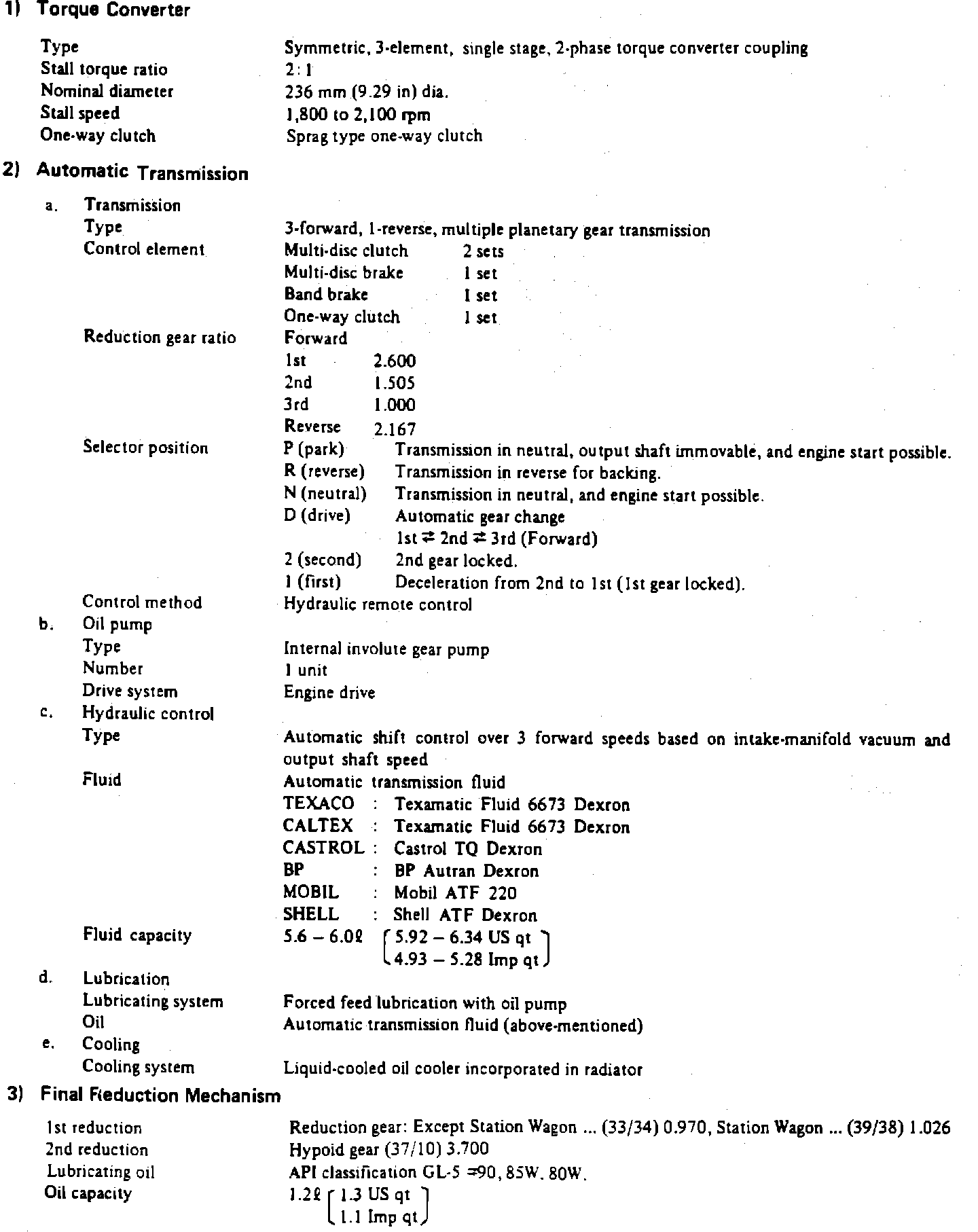 AUTOMATIC TRANSMISSION SPECIFICATIONS