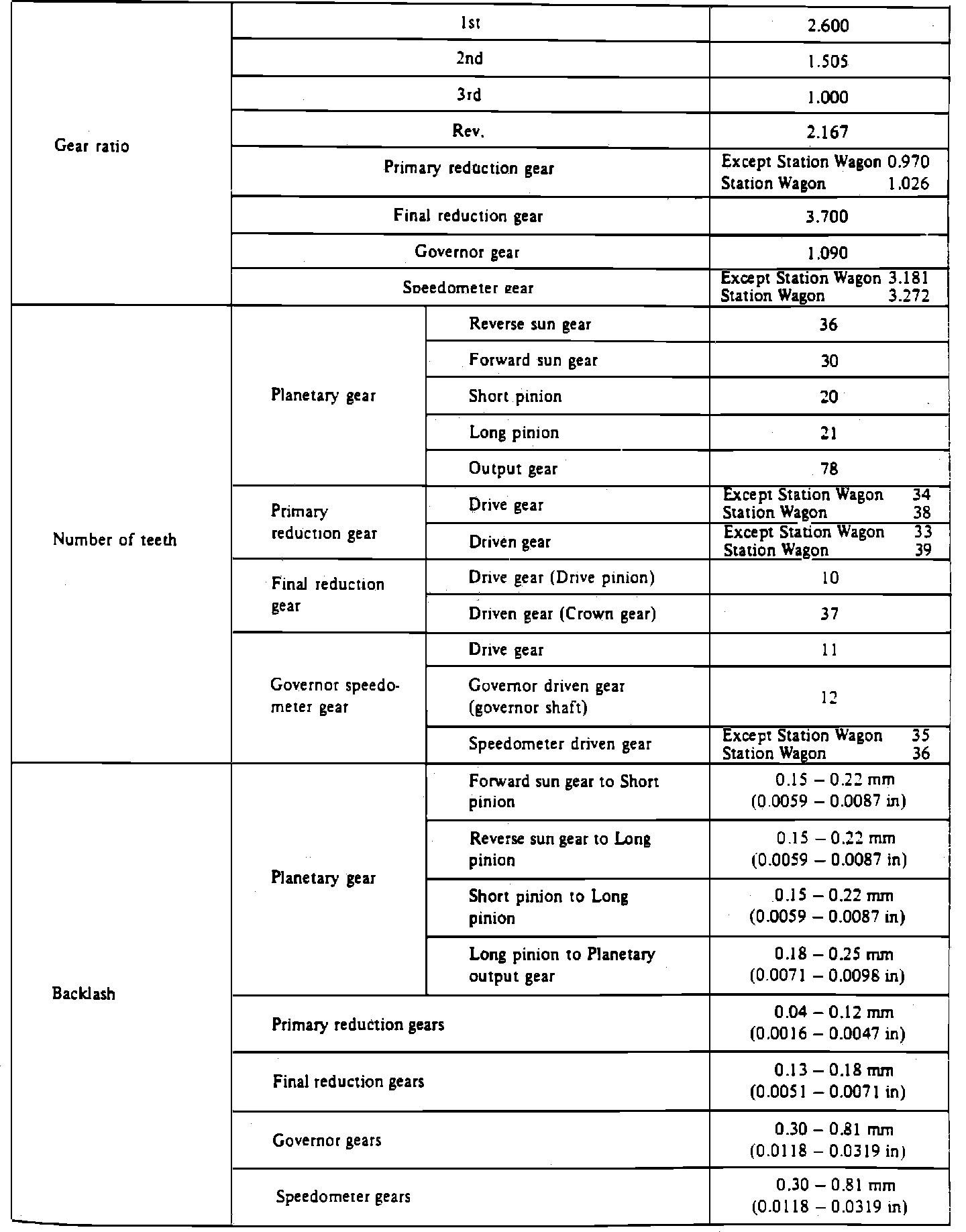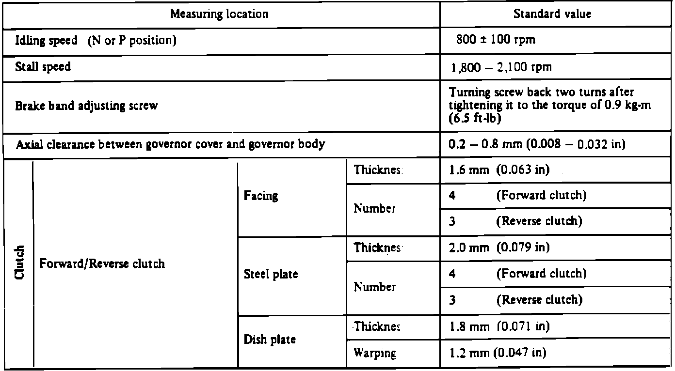 Home >> Subaru >> 1982 >> Hatchback 2WD F4-1781cc 1.8L >> Repair and Diagnosis >> Specifications >> Mechanical Specifications >> Automatic Transmission/Transaxle >> Service Data