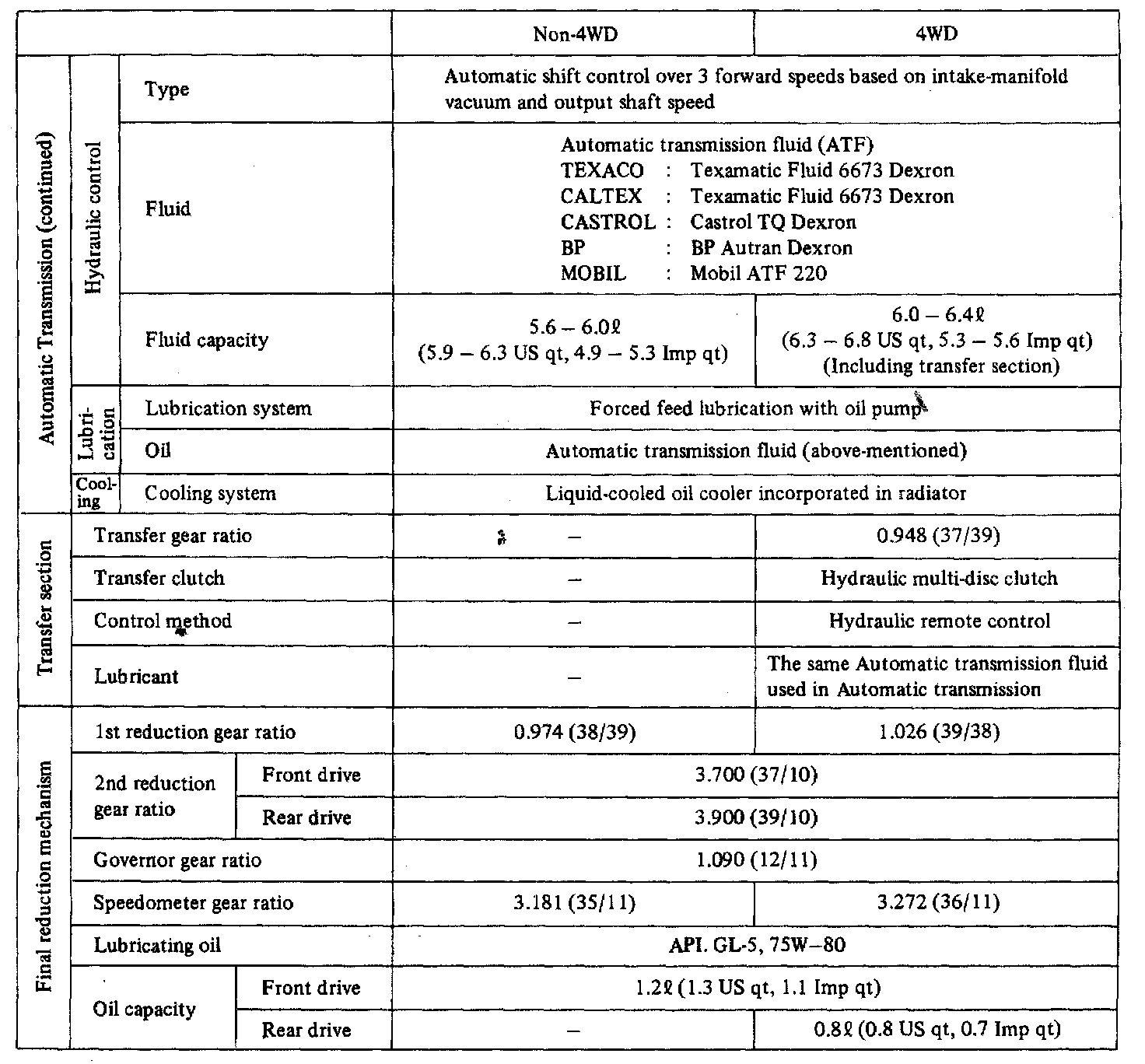 3-spd A/T, 2WD/4WD Transfer & Gear Ratio: