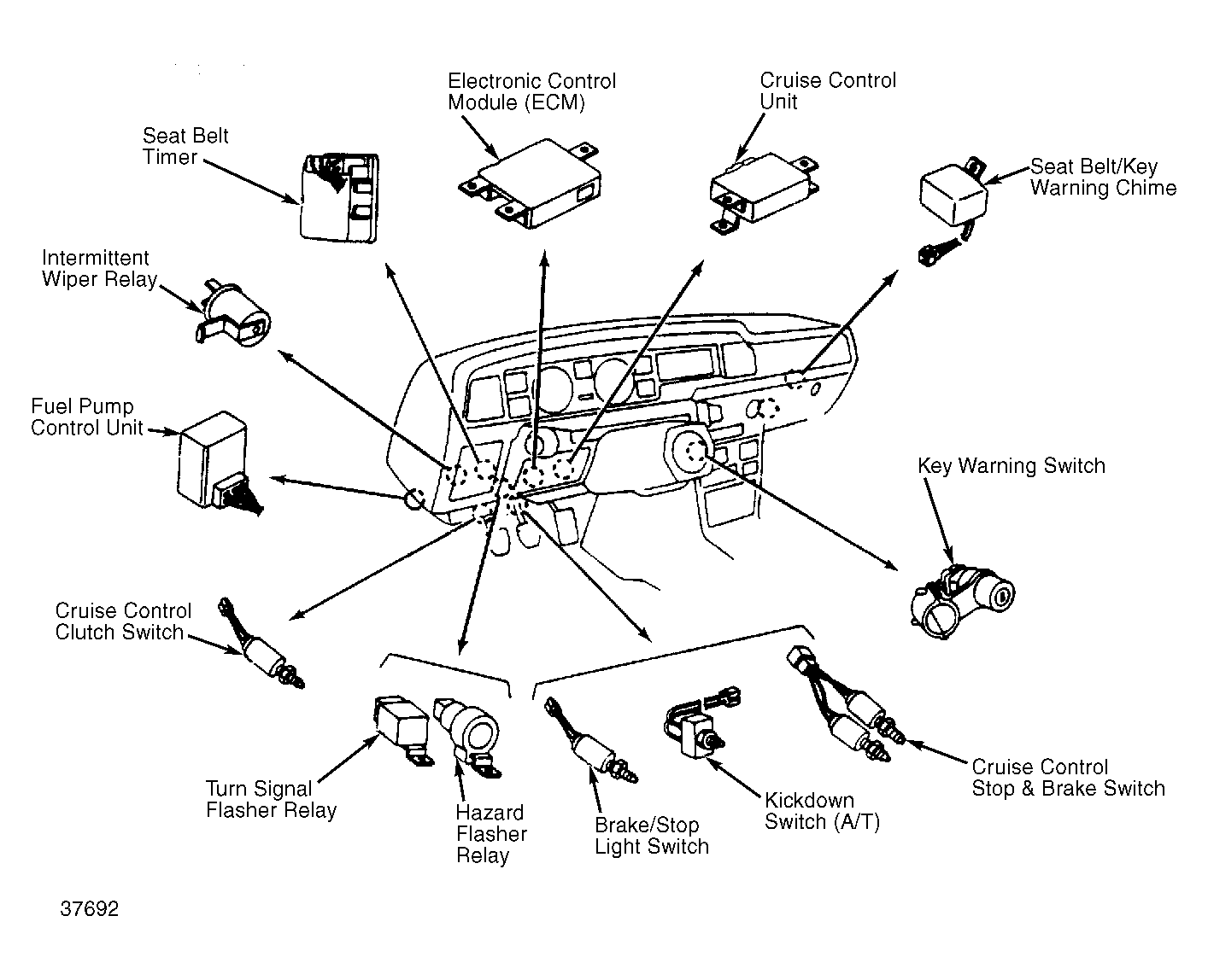 | Cruise Control Unit | Under left side of instrument panel. See Figure . |