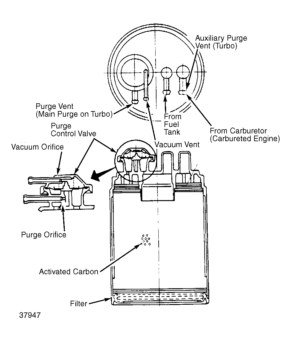 - Remove hoses from canister's fuel tank and carburetor ports. Blow air into each port and check that air flows into canister.