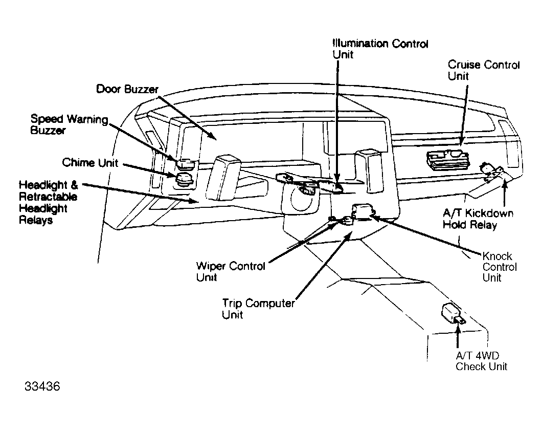 | Cruise Control Unit | Under dash on right side. See Figure . |