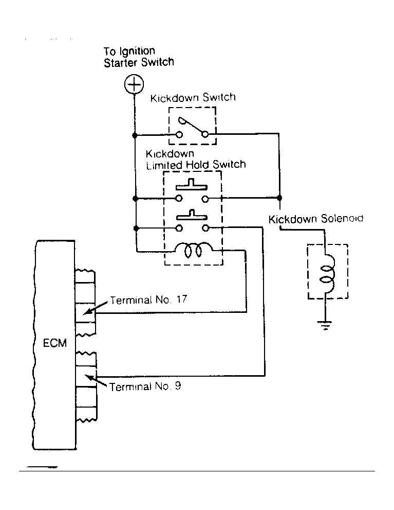 Shift-up control system is provided on auto. trans. equipped vehicles only and is used to reduce CO emissions by providing rapid engine warm-up. If engine is started while coolant temperature is in the preset temperature range, ECM holds transmission in a kickdown state for a certain duration of time. See Fig 1 .