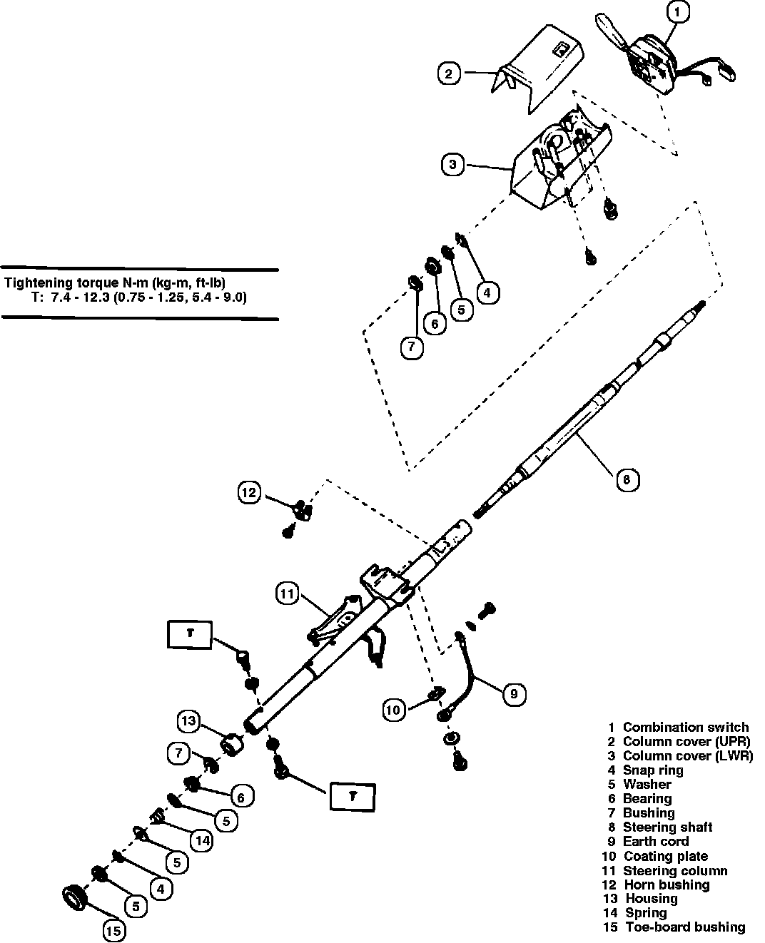 Fig. 5 Exploded view of steering column. 1986-88 models less tilt steering: