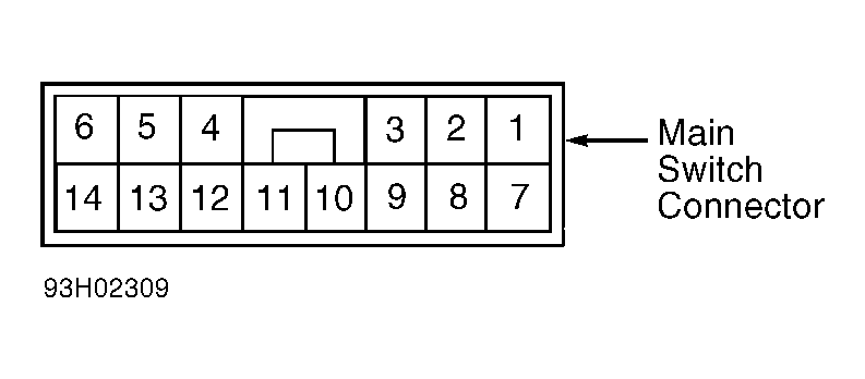 Disconnect switch electrical connector. With switch turned on, there should be continuity between switch connector terminals No. 4 and 9. SeeFigure . With switch turned off, there should be NO continuity between switch connector terminals No. 4 and 9. If continuity is not as specified, replace switch.