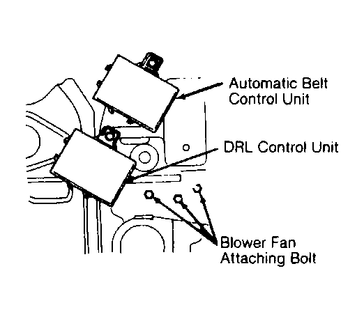 | Automatic Seat Belt Control Unit | Under right dash. See Figure . |